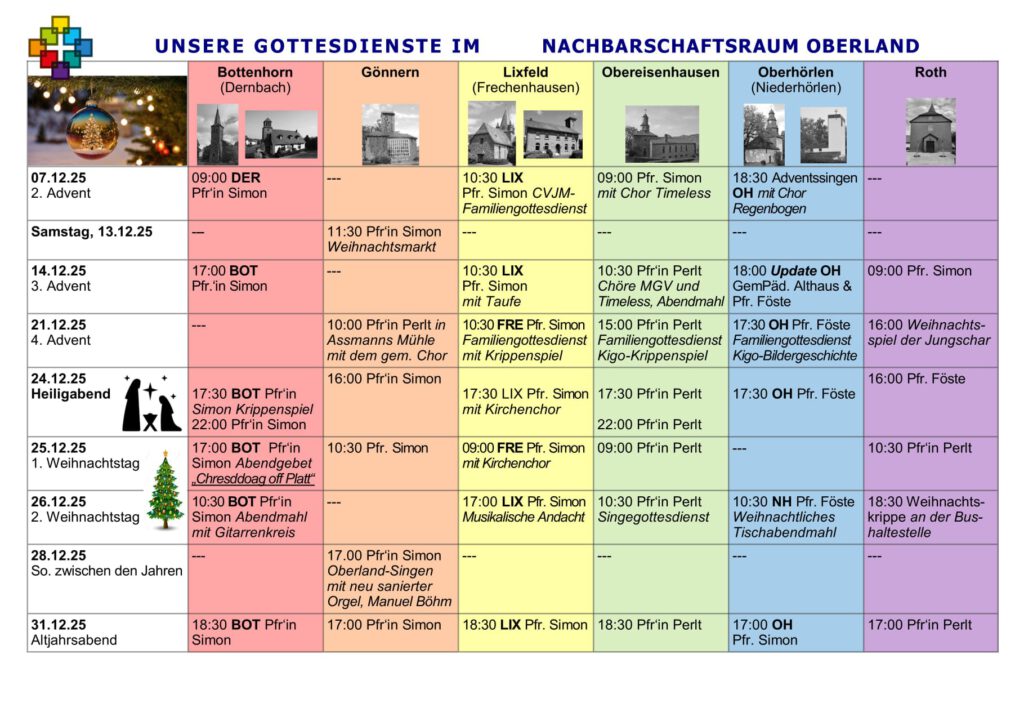 Herzliche Einladung zu unseren sonntäglichen Gottesdiensten in Lixfeld und Frechenhausen!